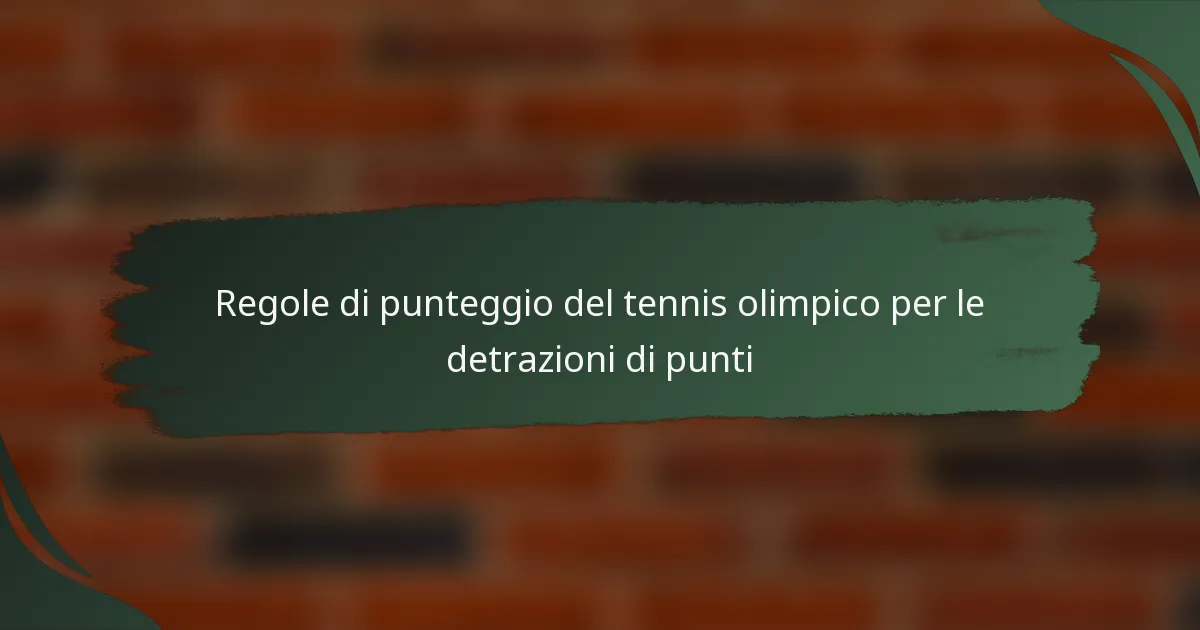 Nel tennis olimpico, le deduzioni di punti vengono applicate quando i giocatori violano regole specifiche, come la condotta antisportiva o le violazioni temporali. Queste penalità possono avere un impatto profondo sull’esito della partita, influenzando sia il punteggio che il momento dei giocatori. Comprendere le circostanze che portano a deduzioni di punti è essenziale per mantenere il fair play e la concentrazione durante la competizione.